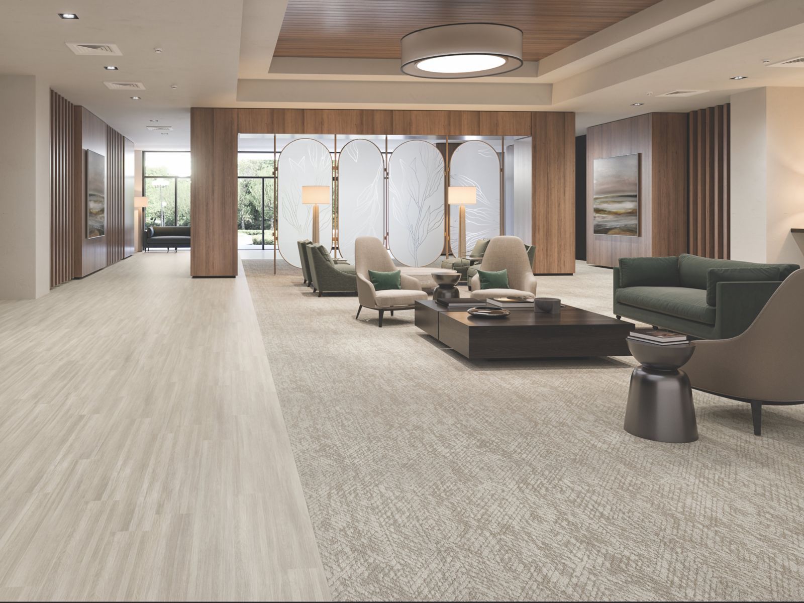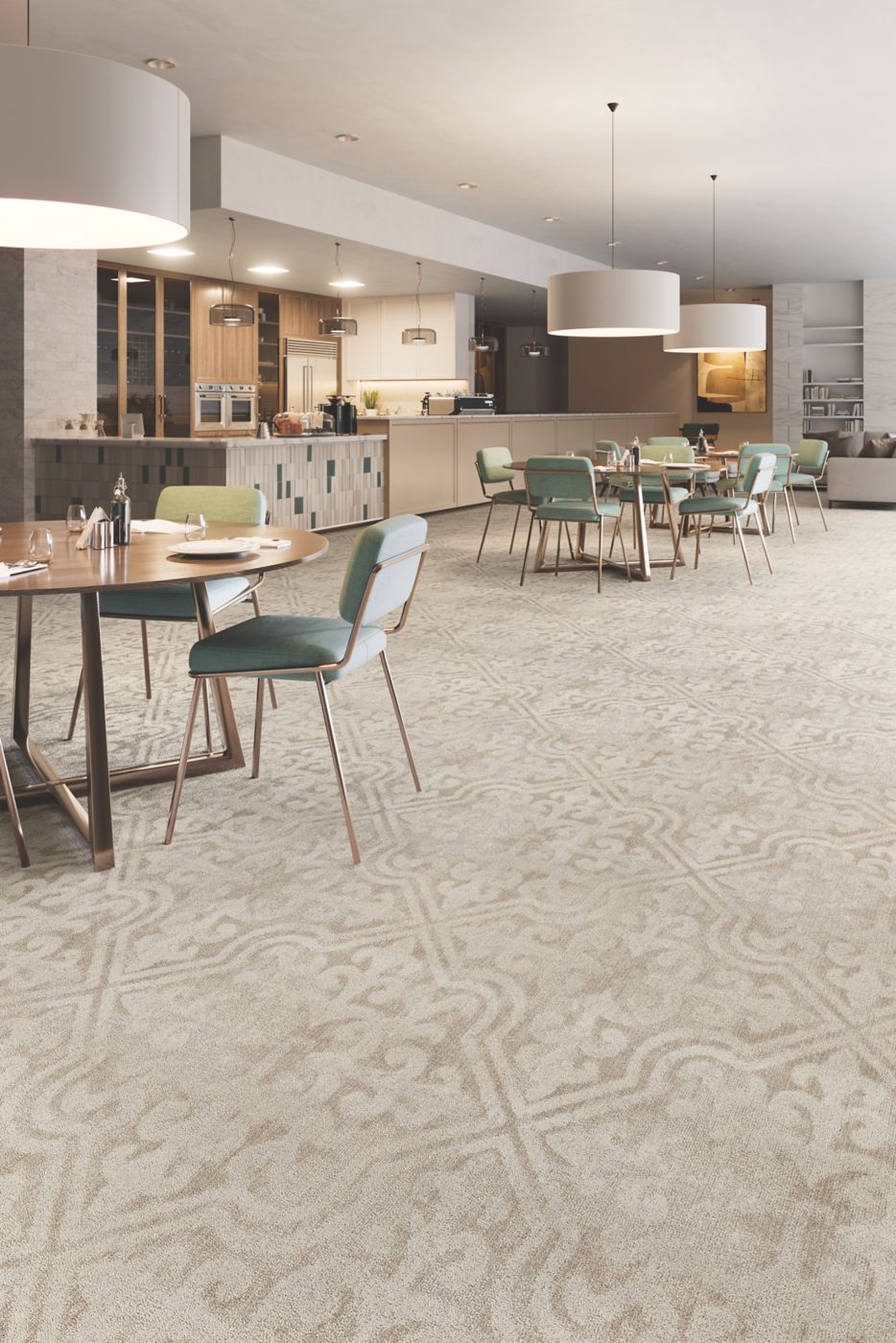 With Abbey Grove, you can bring the unique experience of the conservatory to any space, infusing the indoor environment with a sense of freshness and renewal. The four broadloom carpet tile patterns explore both the architecture and natural elements of conservatories, creating spaces that feel refined yet comfortable.